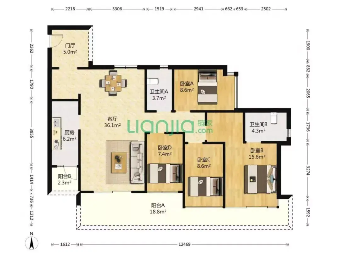小区大户型居多,最小面积为56平两房,总价450万起。户型使用率低,总价过高,不太推荐。