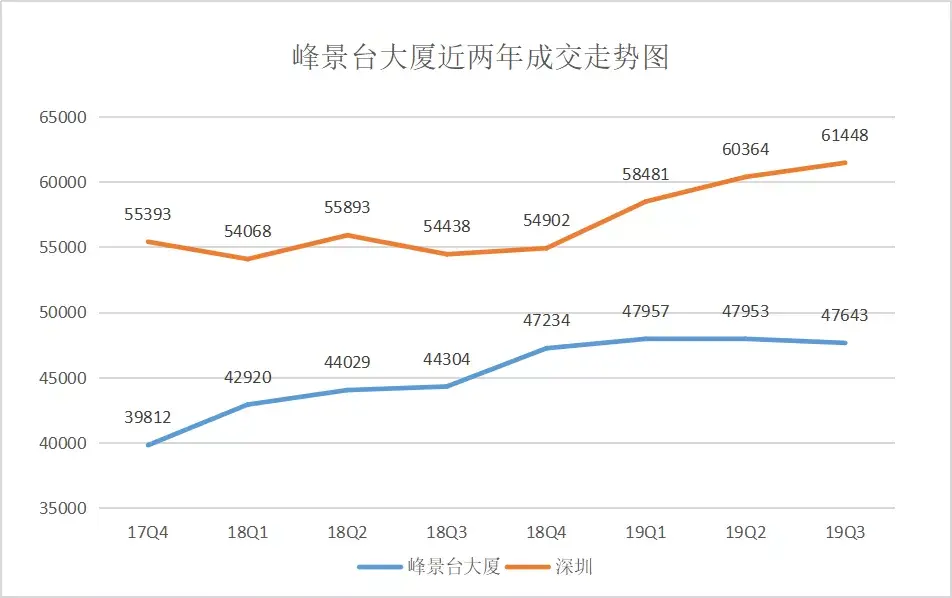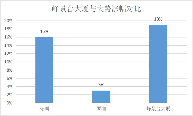 从近两年成交数据看,近两年峰景台大厦成交价涨幅约19%,跑赢深圳16%的涨幅,远高于罗湖区域3%涨幅。