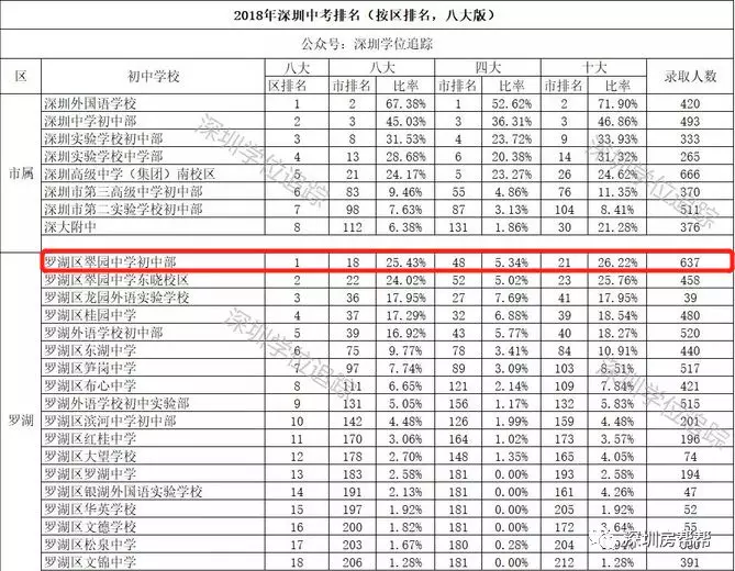 2018年四大升学率为为5.34%,在罗湖区排第4,市排名48。