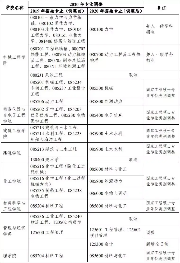 其余专业,以《天津大学 2020 年硕士学位研究生招生专业目录》为准。