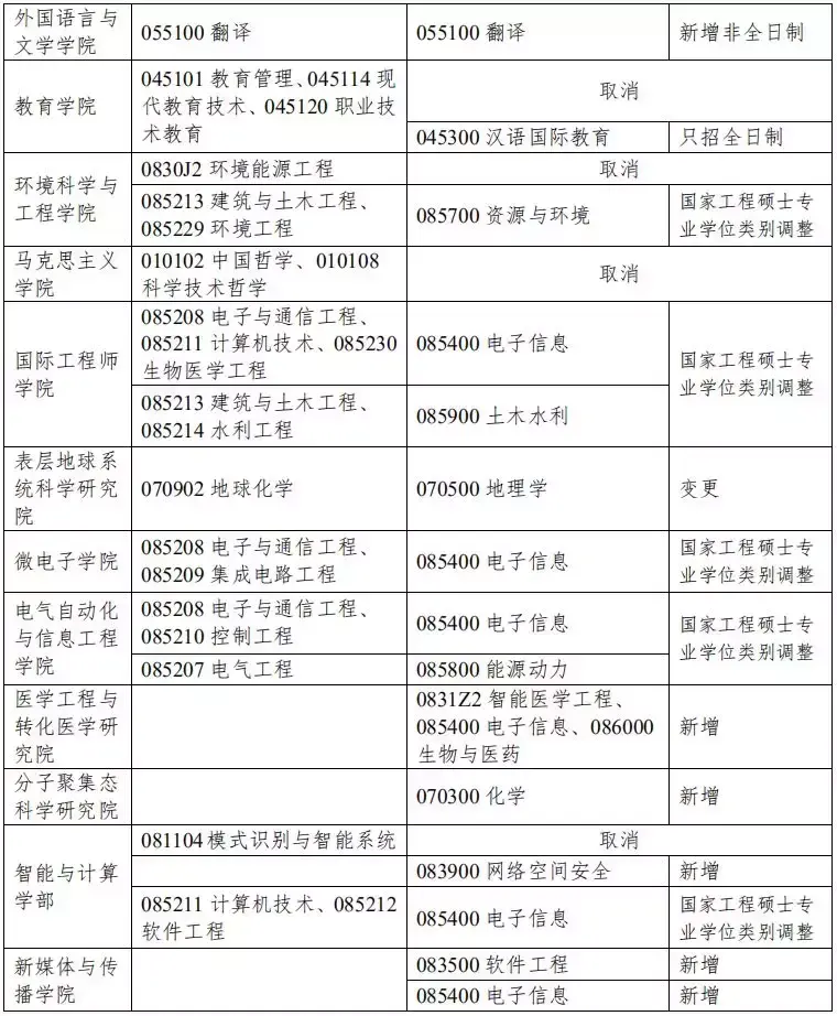 二级招生单位方面,原计算机科学与技术学院与软件学院合并为智能与计算学部,新增独立招生单位分子聚集态科学研究院和新媒体与传播学院。