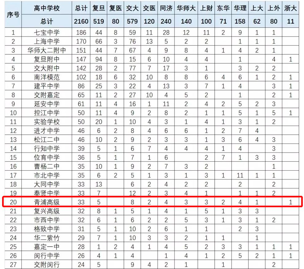 创建于1923年的青浦高级中学,不仅拥有深厚的文化底蕴,而且教学成绩也是有目共睹。通过下图2018年10所高校综合评价录取数据来看,青浦高级中学排在20名,甚至超过了一些八大和四校分校。
