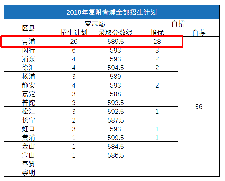 从上图中可以看出,复附青浦对青浦区的考生非常友好,名额最多,而外区想要录取复附青浦太难了,每个区的名额只有个位数。