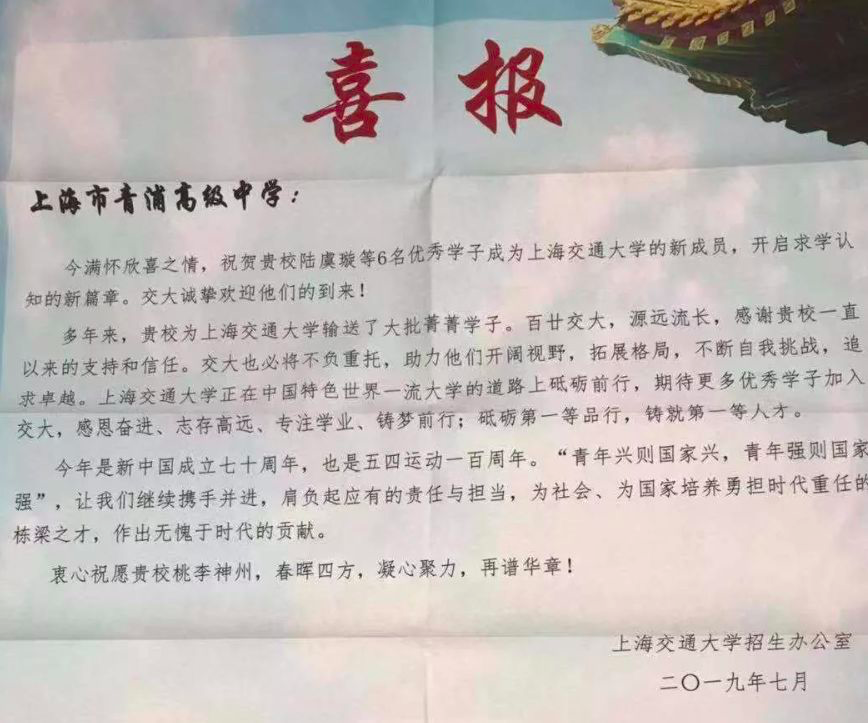 2019年高考,复旦交大纷纷发来喜报:复旦录取5人,交大录取6人,一共11人;综合评价录取17人进入10所985+211学校。