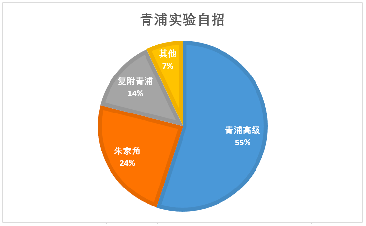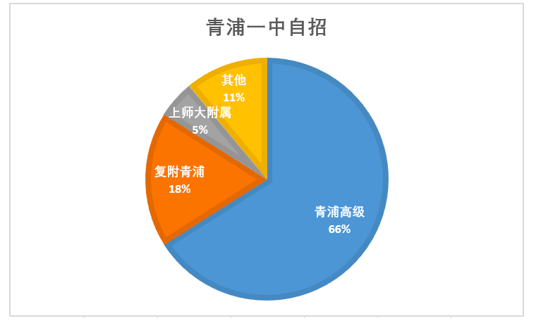 从上图可以看出,青浦一中初中部自招去向主要是青浦高级中学,占比66%,其次是复附青浦,占比18%,预录上师大附属的学生有5%,其他个别进入交附嘉定、松江二中、朱家角等。