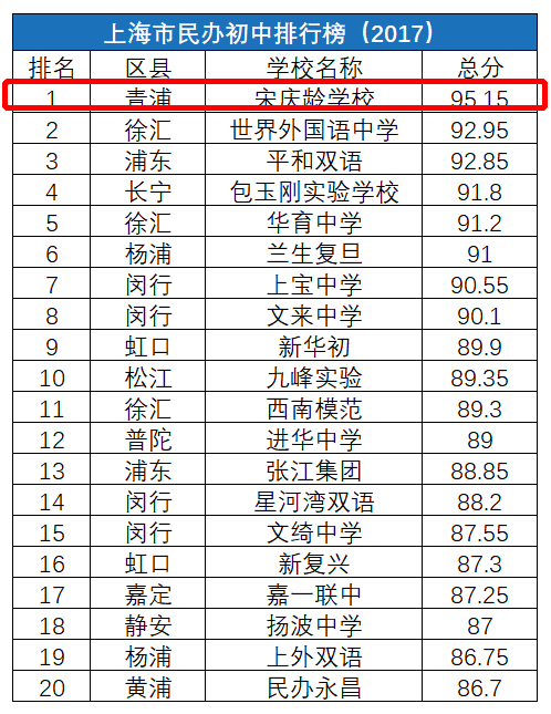 有人曾根据软硬件、口碑、师资及升学成绩等标准,对上海民办小学初中进行综合打分排名,最终排名显示,宋庆龄学校的综合评分在上海市民办小学和民办初中排名榜中,均位列榜首。