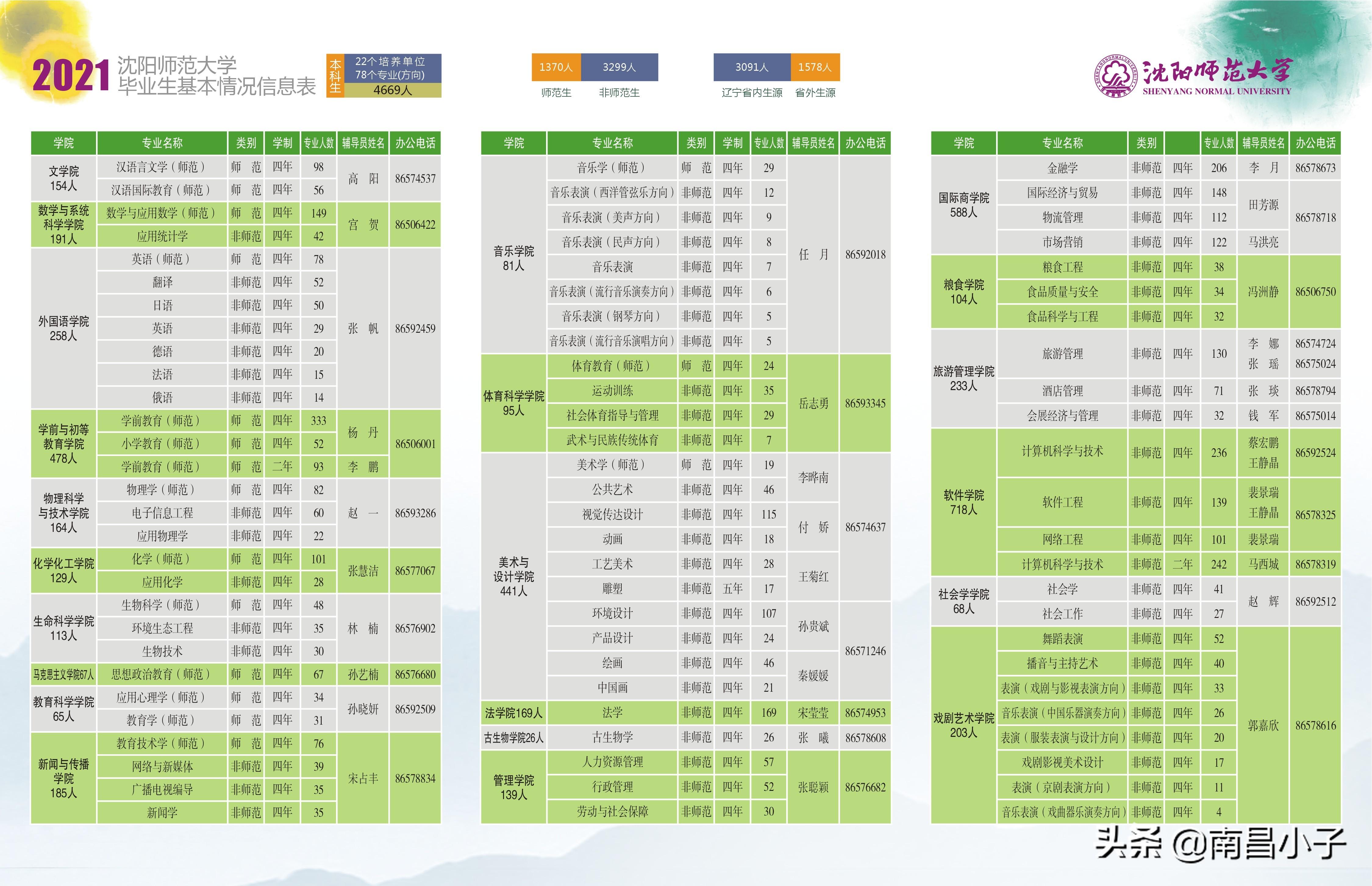 辽宁师范大学2021届本科生生源方面,有约2200余人来自辽宁省内,一千余人来自省外。在硕士、博士生源上,辽宁省内和省外学生数基本持平,各占一半。