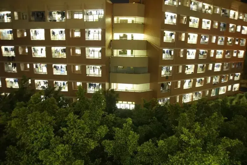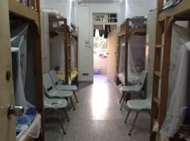 高一高二一般是8人间,高三6人间。有空调,独立卫生间浴室,有小柜子。