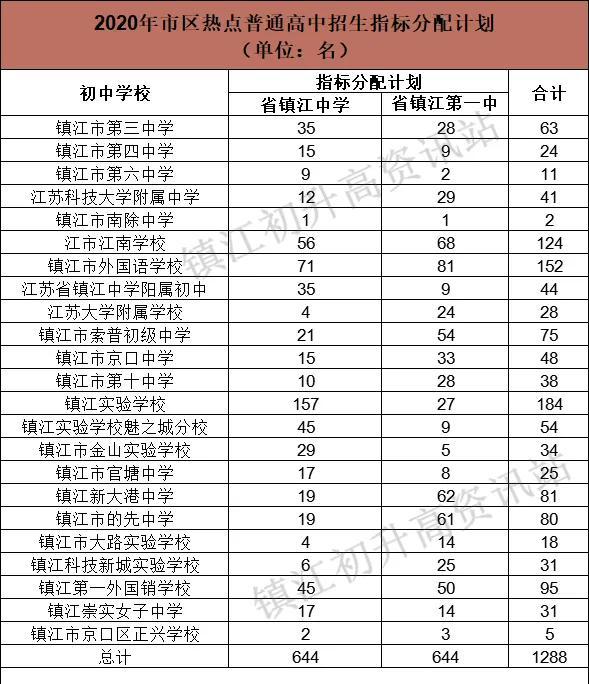 镇江市区的中考指标生名额,具体是指镇江一中、镇江中学两所定向重点高中分配到镇江市区各个初中的招生名额