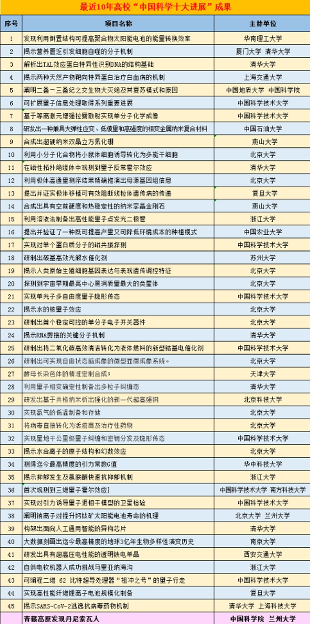 只能说北大不愧是第一高校,11项中国科学进展遥遥领先,无人能及。