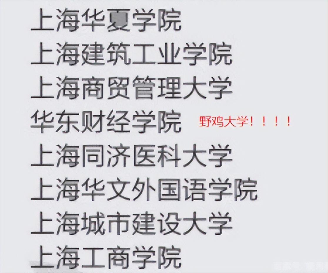 其实也不怪老父亲,毕竟很多野鸡大学的名字都喜欢“蹭热度”。像很多野鸡大学诸如臭名昭著的“上海工商学院”和“上海财经学院”,就很爱碰瓷这种正规名校的取名方式。
