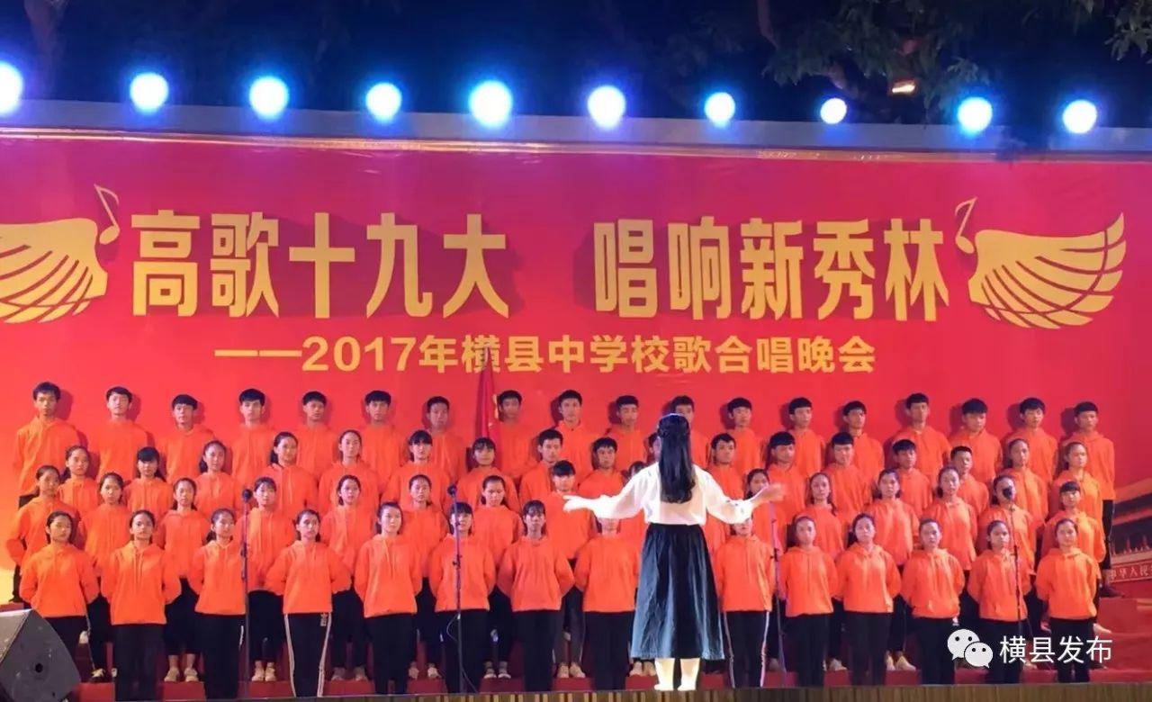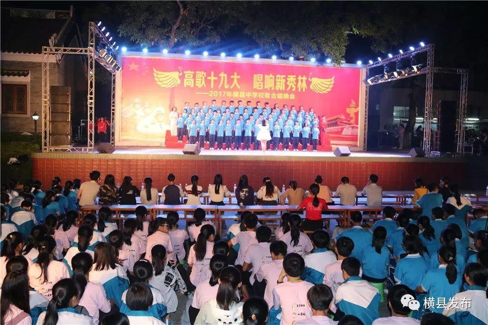 回顾辉煌历史,展望美好未来,10月27日晚,横县中学举办“高歌十九大 唱响新秀林”校歌合唱比赛,师生讴歌祖国,献礼十九大。