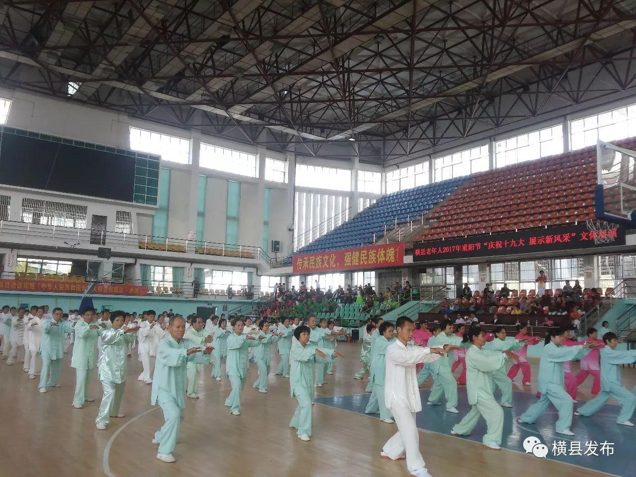歌声嘹亮颂党恩,轻歌伴舞爱党情,在全国上下欢庆党的十九大胜利闭幕的日子里,10月30日,由横县县委老干部局主办、横县老年人体育协会协办的“欢庆十九大.展示新风采”文艺展演活动在县体育馆隆重举行,来自各街(居)委、各乡镇的72个晨练站(队),共 1300多名老年人参加。