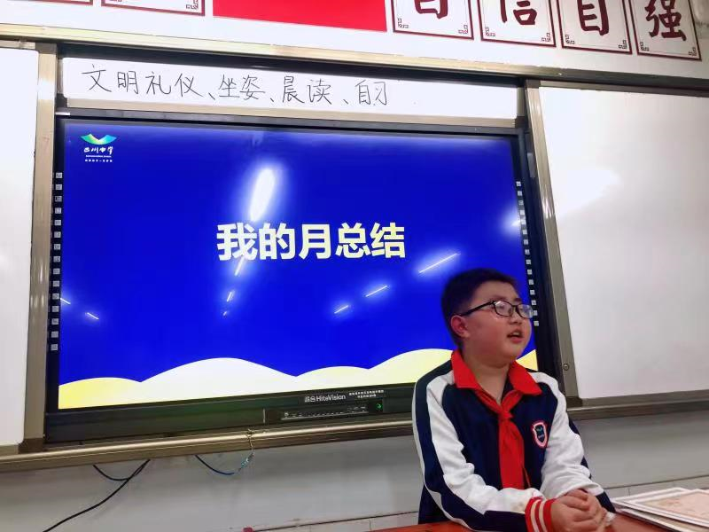 在班外,我借助学校平台,助推学生自主成长。每学期,班里学生代表都会参加学校和年级各类学习交流会,我鼓励他们自己制作PPT、撰写发言稿,虽然每次帮忙修改比自己代劳更费时费力,但我愿意为学生提供挑战自己的机会。我们班学生为此仔细查阅资料,学习技能,小组研讨,挑战自己,各方面的能力都得到了极大的提升。