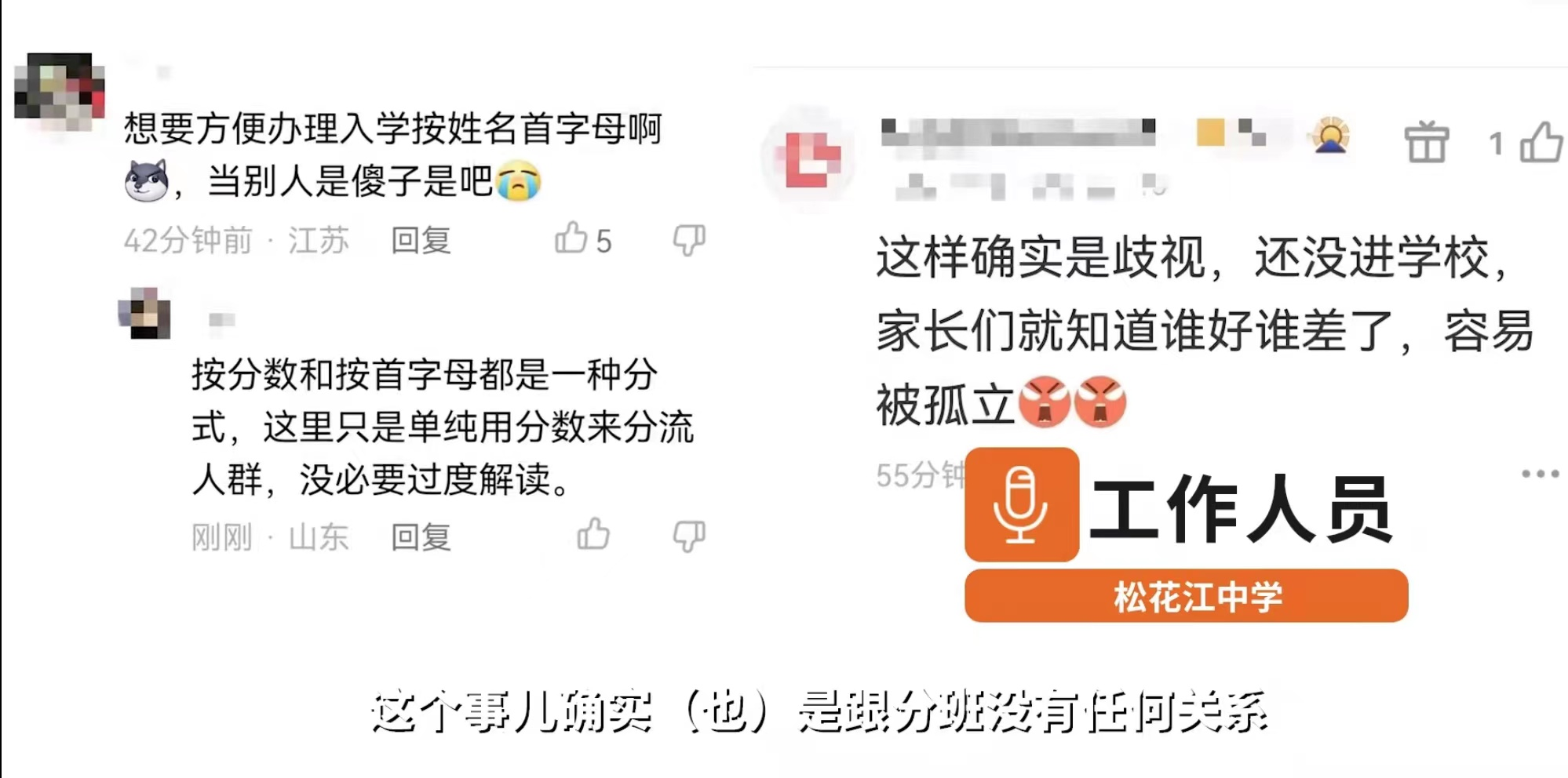 学校的回应很清晰,解释了这么做的原因,态度也很诚恳,但是仍旧有家长不买账,有家长觉得还没入学就按照分数排队,学生互相都知道谁成绩好谁成绩差了,学生容易被孤立,依旧怀疑学校目的不纯。