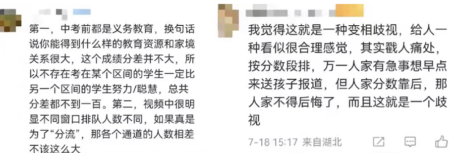 而与家长想法不同,多数网友都认为学校的做法没毛病,是家长太敏感了,学校只是想将学生分流以提升办理速度,家长没必要过分解读。