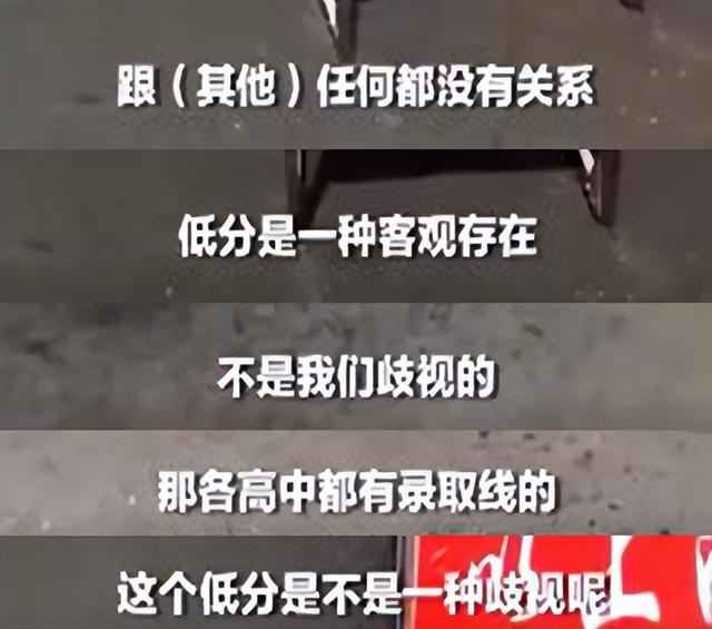 学校工作人员表示这么做的目的就是为了分段不拥挤,没有其他的想法,至于部分家长的质疑,校方直言低分是客观存在的东西,各高中都有录取分数线,是不是也是对低分的一种歧视呢?