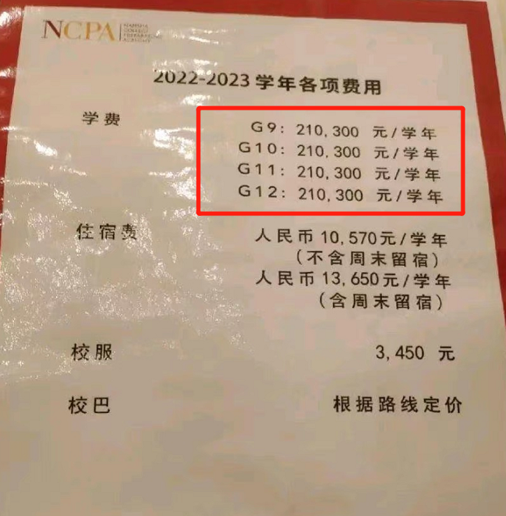 某国际私立中学的学费流出,金额让人看了就有些心慌,该所学校主要是负责教授9-12年级的学生,学费标准是210300元一学年,也就是说光是学费就是一年20多万的标准。