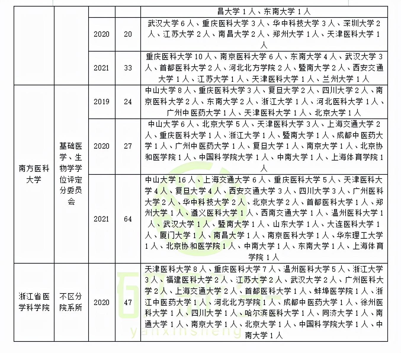 安徽:皖南医学院(不区分院系所)、安徽医科大学基础医学院(一)、安徽医科大学基础医学院(二)、蚌埠医学院(不区分院系所)