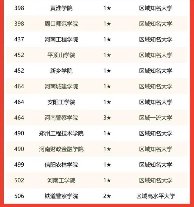 在这份榜单中,共计39所河南省高校进入榜单。其中郑州大学、信息工程大学、河南大学居榜单前3名,是河南省最好的3所大学,河南科技大学、河南师范大学、河南农业大学、河南理工大学紧随其后。