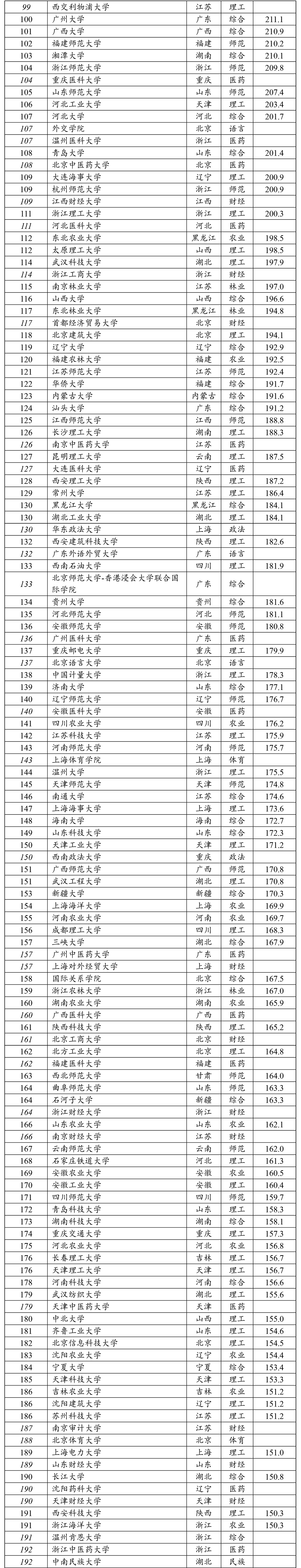 首次发布医药、财经、语言、政法、民族、体育六类单科性大学排名