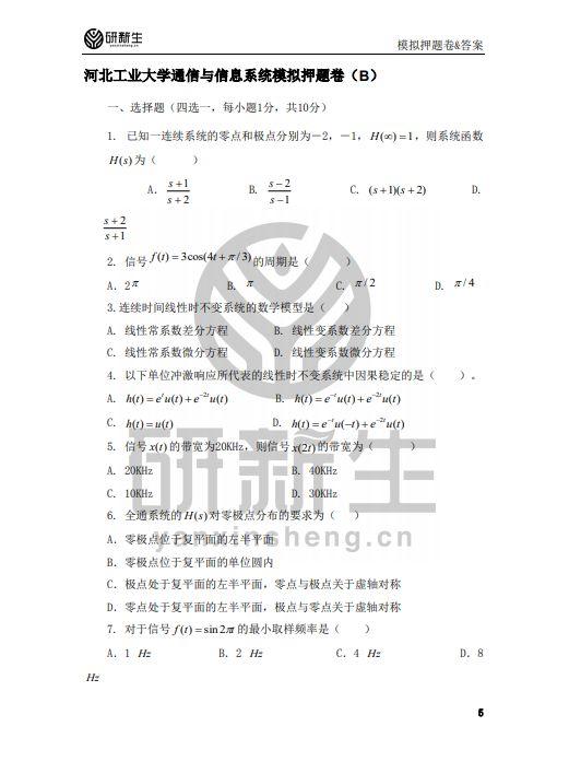 业务课二:(891)通信原理 | (892)模拟与数字电路