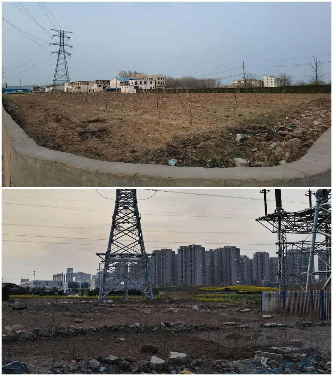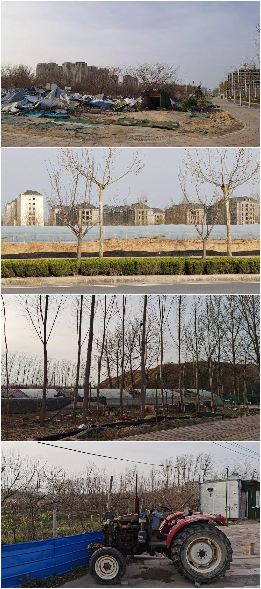 郑汴物流通道南边,仍有大量荒地、土坡和塑料大棚。