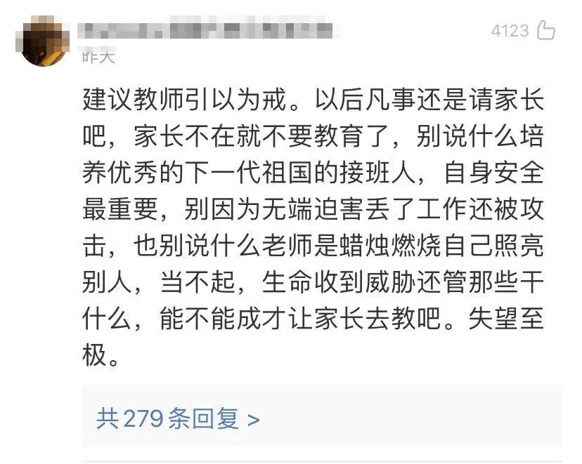 而在事件微博底下的热评里,也能看到教师群体的心寒。