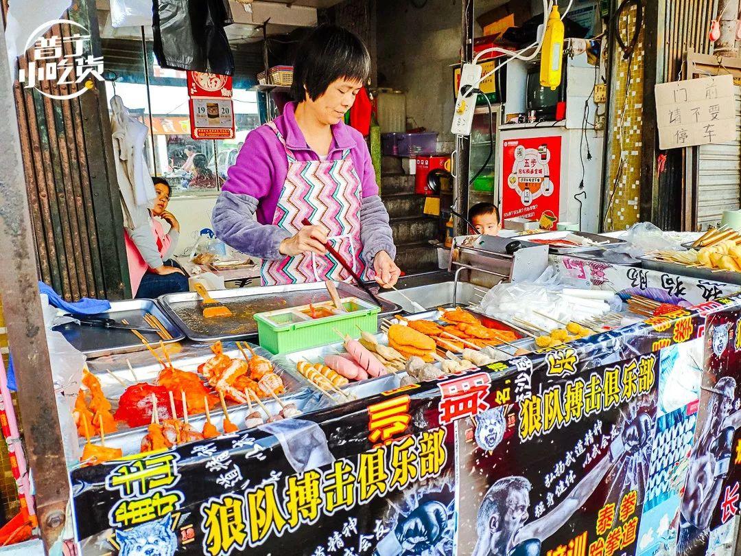 这家路边摊就在城东中学侧面美宜佳门口,每天下午都能围上一圈刚放学的学生。
