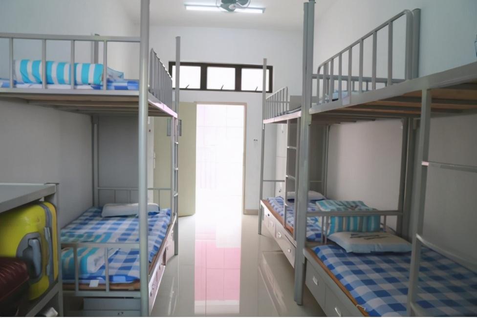 宿舍采用6人一间,上床下桌,可以透过阳台欣赏到海景。