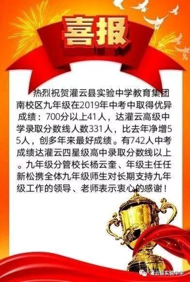 700分以上41人,达灌云高级中学录取分数线人数331人,比去年净增55人,创多年来最好成绩