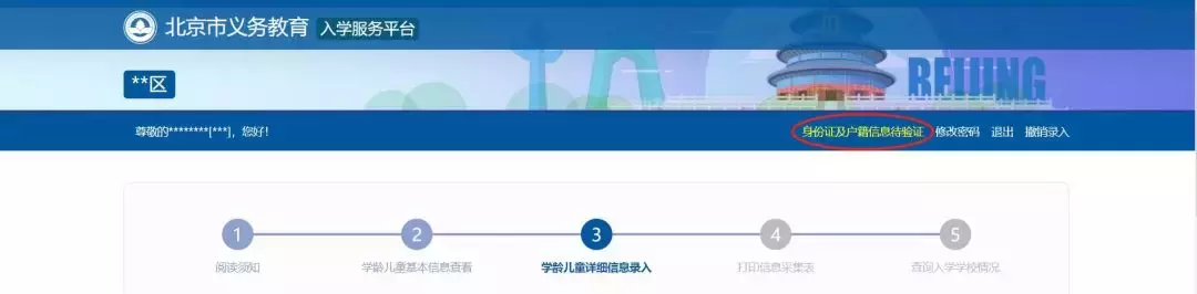 3. 户籍所在地和居住地所在区中的任意一项,必须与用户所选择的儿童入学所在区一致才能完成注册;