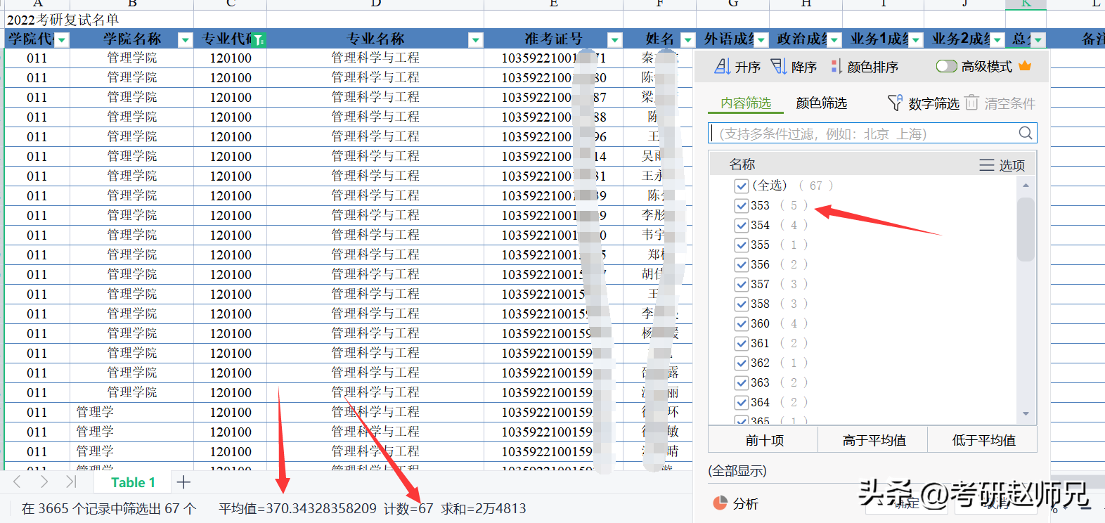 22考研录取情况学硕一志愿总共进入67人,最低分353分,平均分370分,最高分408分。