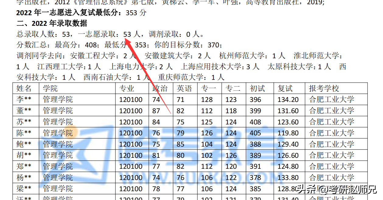 最终实际录取53人,复试刷掉15人,看这调剂去向,都是调剂到普通的双非高校,正常调剂到211难度还是很大的。