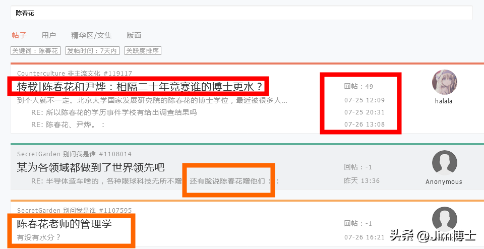 北大未名论坛毫无波澜,这两天和陈春花有关系的帖子只有3个,其中两个没人理睬,唯一有49个评论的帖子是转载饶毅评论尹烨的帖子《陈春花和尹烨:相隔二十年竞赛谁的博士更水? 》。