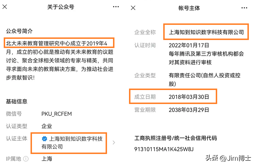 而北大未来教育管理研究中心的微信公众号上显示的认证主体,便是2018年3月成立的上海知到。陈春花教授在该公司持股33%。