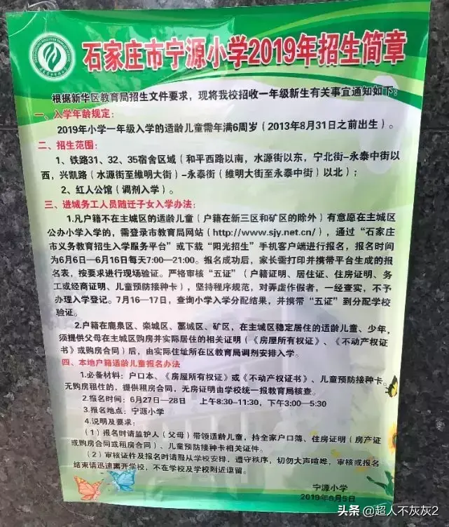 首先,找准学区划片界限,以街道为准,特殊情况特殊对待,比如裕华路小学划片范围内,槐中路沿线小区大门朝南的归属青园街小学;其次,如果是新建小区,除非开发商走动关系,否则一般不纳入学区划片;最后,很多小区有特殊情况,比如裕东小学划片范围内的金马腾宏园,隶属小马村,应该上金马小学分校(槐底村同样);或者有的小区和划片内的学校有纠纷,导致学校拒不接受本小区适龄少年入学,也是很正常的。总之,招生入学的最终决定权,在学校手中,建议多关注一下每年入学季,学校门口贴出的招生简章,如下图所示。