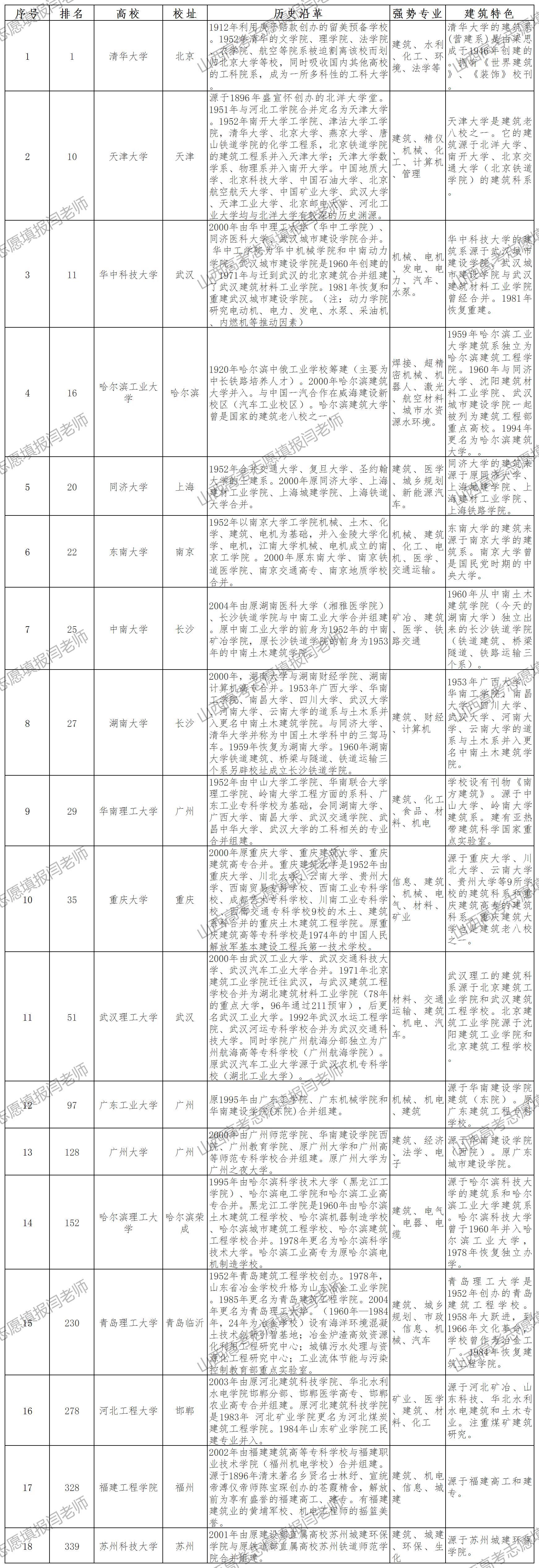 建筑高校排名