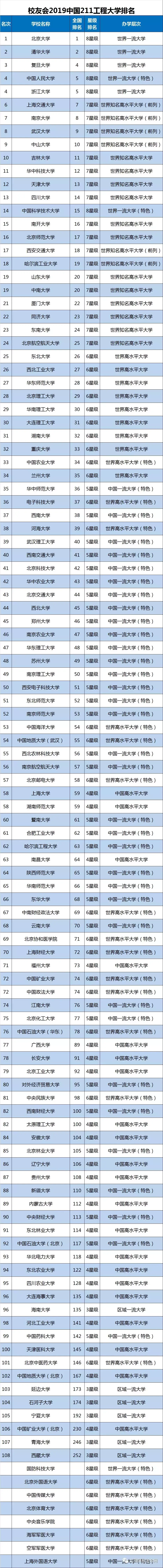 报告显示,在艾瑞深中国校友会网2019中国大学排名1200强中,北京大学、清华大学、复旦大学、中国人民大学、浙江大学、上海交通大学、南京大学、武汉大学、中山大学、吉林大学位列校友会2019中国211工程大学排行榜前10强。在我国116所“211工程”大学中,83所211工程高校跻身全国100强,3所高校未能跻身200强。