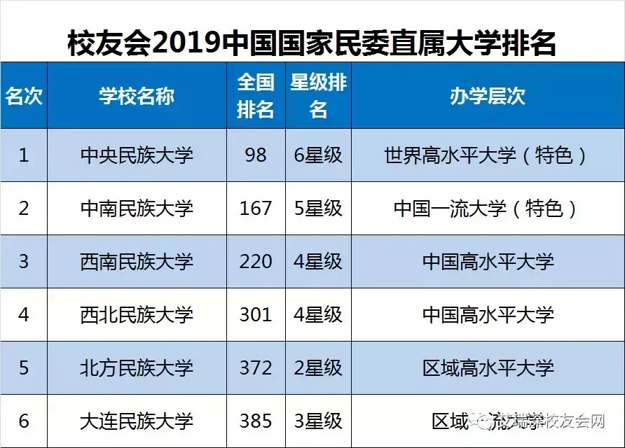 中央民族大学、中南民族大学、西南民族大学名列2019中国国家民委直属大学排名前3强;