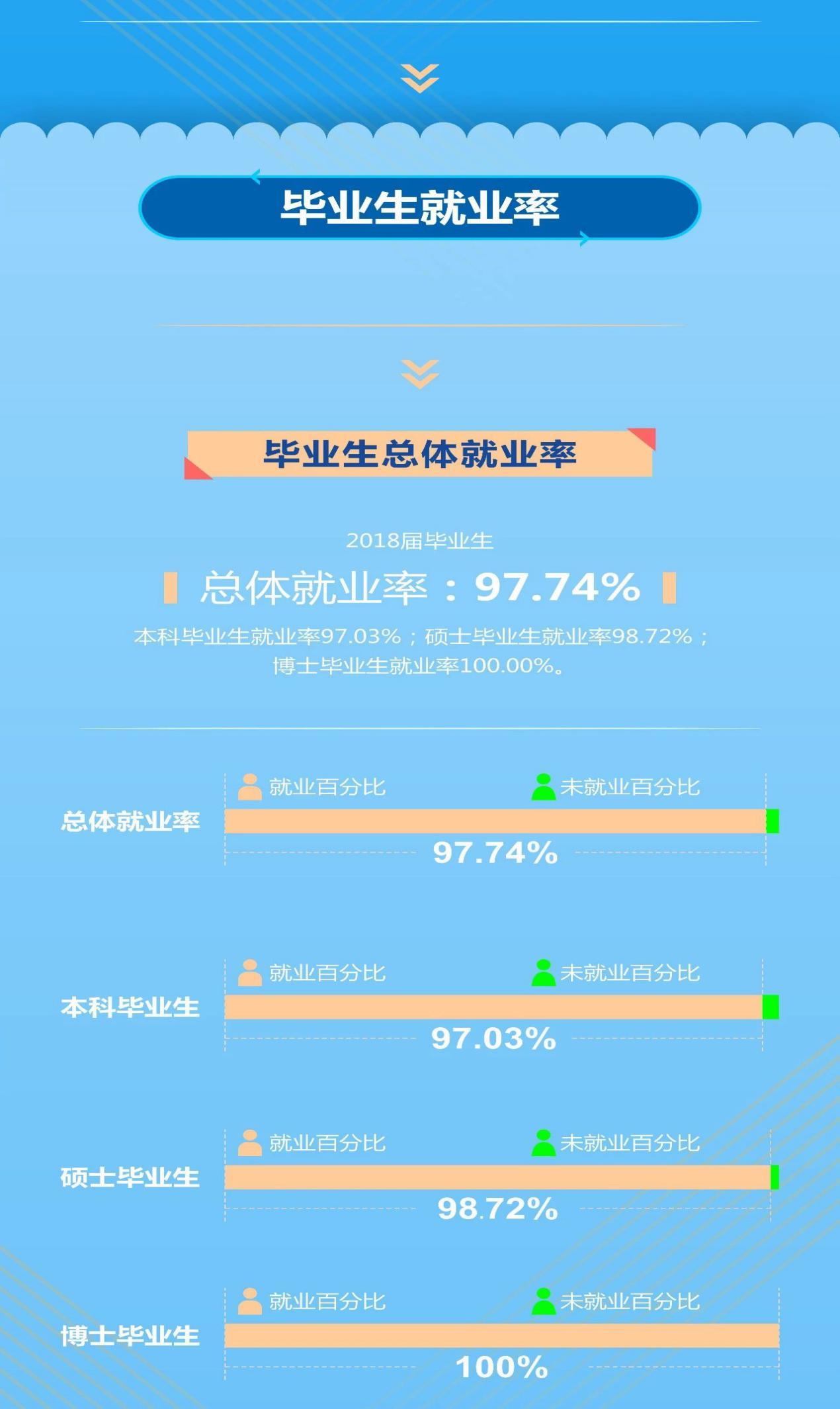 西南财经大学2018届毕业生总体就业率为97.74%,其中本科毕业生就业率为97.03%;硕士毕业生就业率为98.72%;博士毕业生就业率为100%。