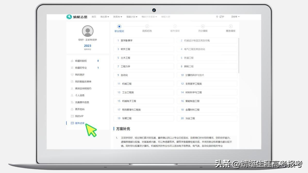 在职业规划阶段,规划师会根据学生在云平台做的职业测评结果推荐适合的专业,学生可对推荐专业进行删除或排序,规划师也能及时跟进方案的变动,无需反复对比确认,还能直接给学生留言。