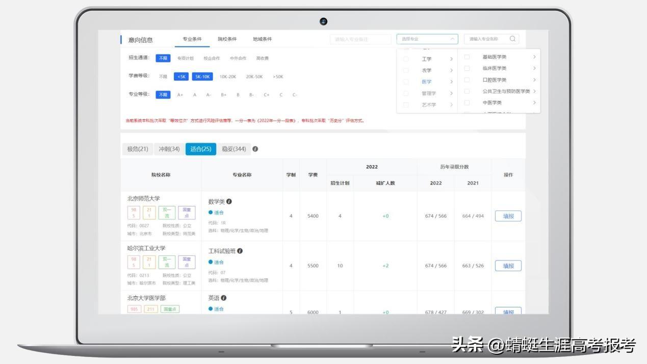 例如经济水平较好的家庭可以选择中外合作办学、校企合作等高收费的专业;想当律师的考生可以筛选出政法类专业;想去一二线大城市闯荡的考生也可以排除偏远地区的大学。
