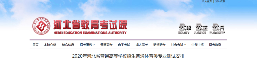 根据教育部关于2020年普通高考工作部署,结合我省新冠肺炎疫情防控工作实际,2020年河北省普通高等学校招生普通体育类专业(体育教育、社会体育指导与管理等专业,下同)测试工作定于5月下旬至6月上旬进行。