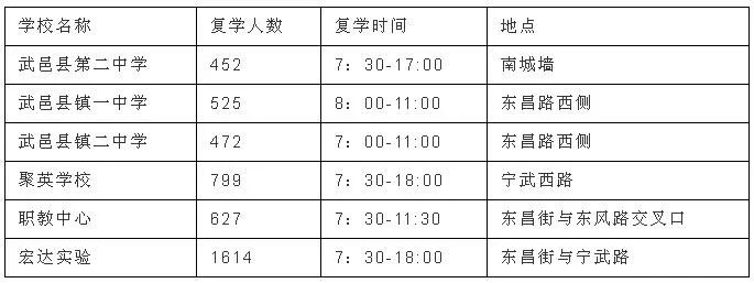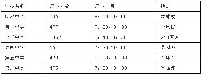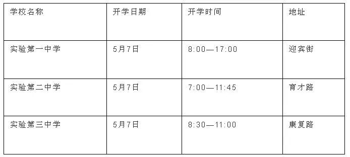 开学时间:5月7日上午6:30一10:30下午1:30一5:30 (班级分批返校)