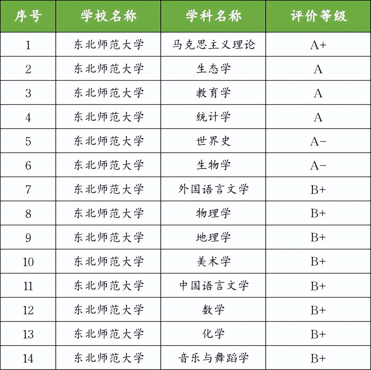 东北师范大学是全国九大师范院校之一,在2022年软科中国大学排名(主榜)上,东北师范大学在位列全国第44名。在全国第四轮学科评估中,A+类学科1个、A类学科3个、A-类学科2个,B类学科15个,学科实力强劲。