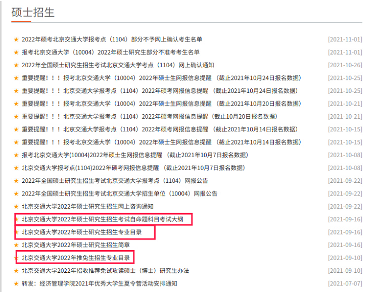 在北京交通大学研究生院官网中,考生可以很方便地找到该校的招生目录、自命题专业的考试大纲、历年复试分数线等,信息公开透明。