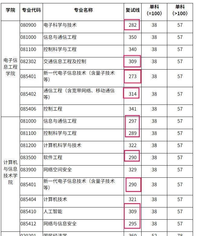 从北京交通大学的复试分数线可以看到,部分专业的分数线比较适中。比如,2022年工学国家线为273分,而在该校的电子信息工程学院和计算机与信息技术学院中,不少工学专业的复试分数线与国家线相差并不大。作为一所北京地区的211院校,这个分数真的很难得。