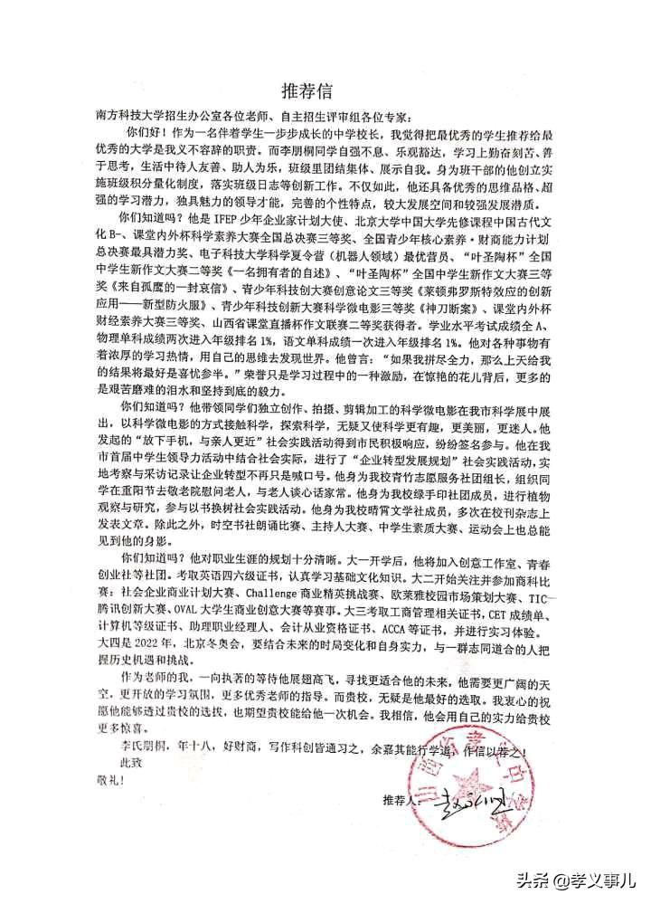每年,孝义中学校长都会向全国各大高校推荐优秀学子