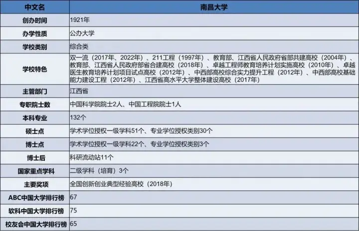 南昌大学,是国家“双一流”建设高校、国家“211工程”重点建设高校,教育部与江西省人民政府部省合建高校、江西省高水平大学整体建设高校,是全国首批深化创新创业教育改革示范高校、教育部中国教育和科研计算机网(CERNET)江西主节点单位,是中国教育交流协会常务理事单位、教育部来华留学示范基地、教育部留学服务中心出国留学培训基地、全国汉语水平HSK网考先进考点。